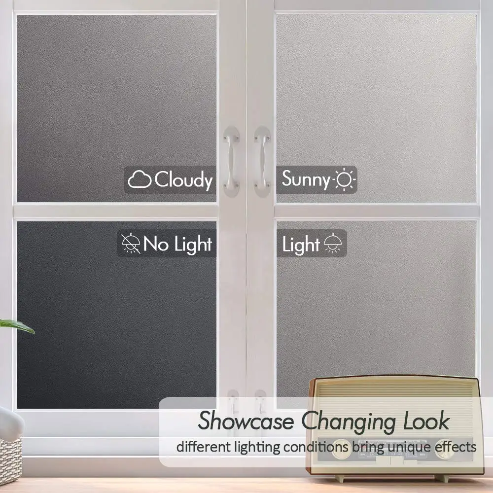 PRIVACY PROTECTION: Private window film blurs unwanted views while brightening the room with soft natural light. Privacy Level :★★★★☆ (applicable for most cases but not recommended for bathroom use)