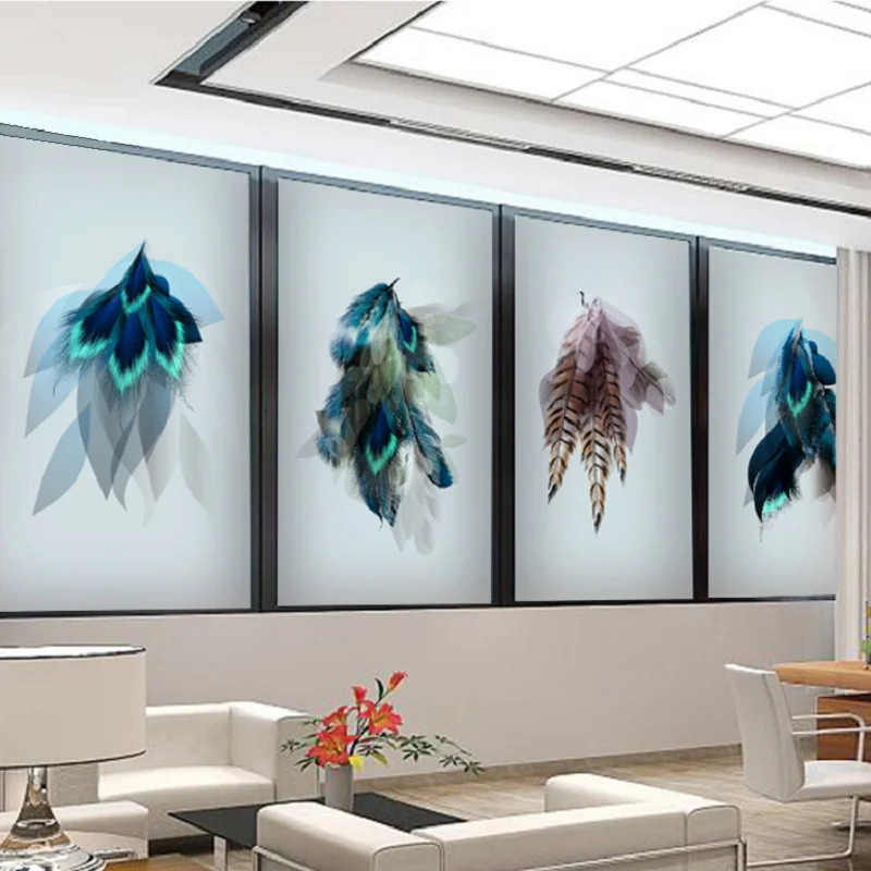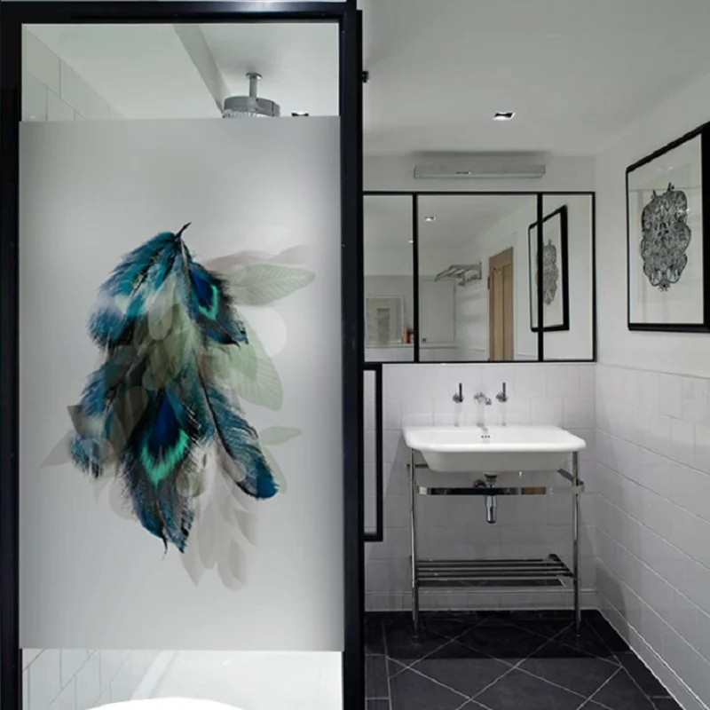 | Custom Size Static Cling Window Film Feather Pattern Removable Reusable Private Decorative Glass Sticker For Home Office Store |