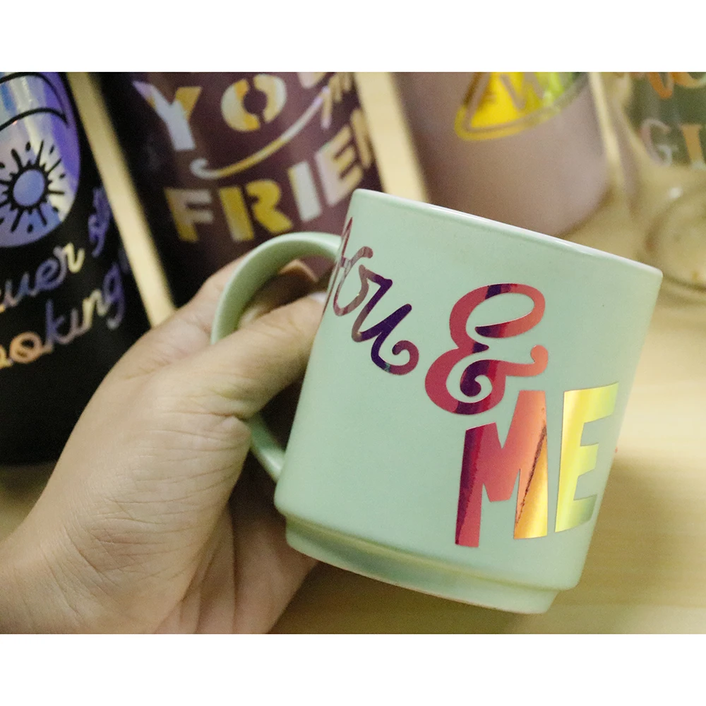 | HOHOFILM 30.5cmx100cm Cutting Vinyl With Adhesive Holographic Craft Vinyl Sheets for Craft Cutters,Sign Plotters cup/table/car |
