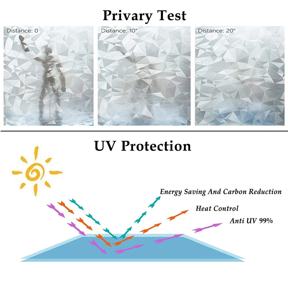 | Multi sizes Privacy Window Film,3D Diamond Decorative Windows Cling Stained Glass Film For Home and Office Anti UV window Cover |