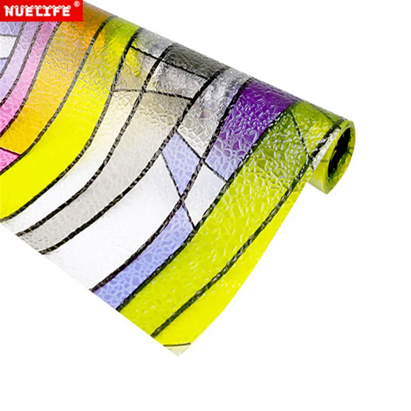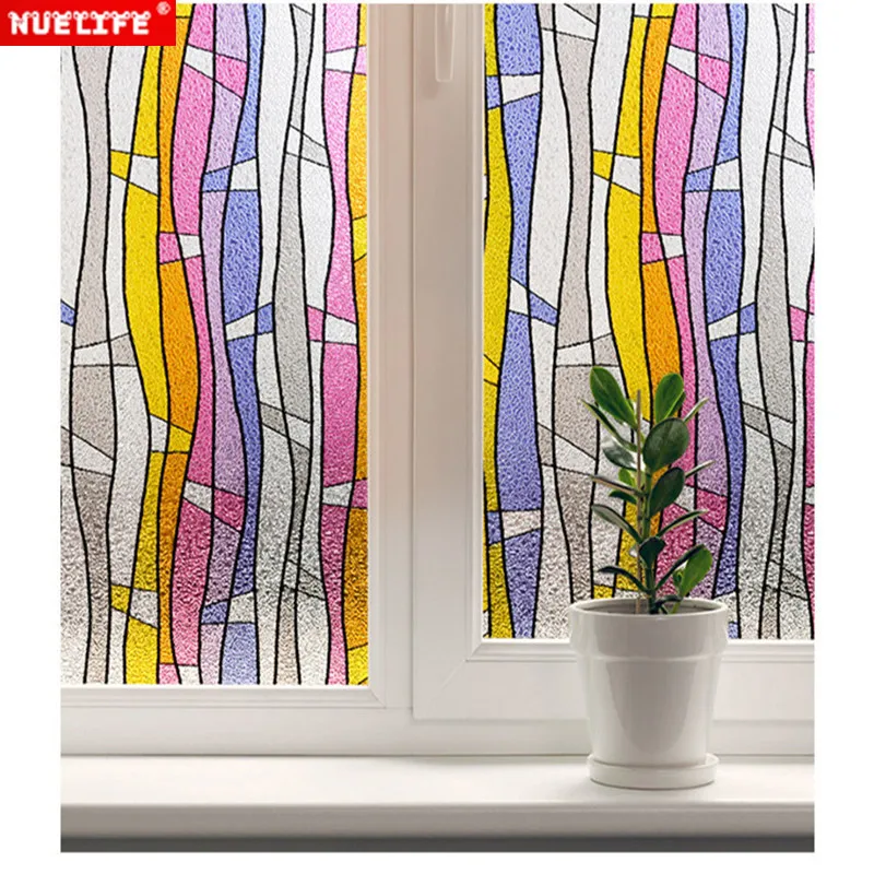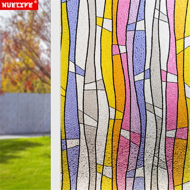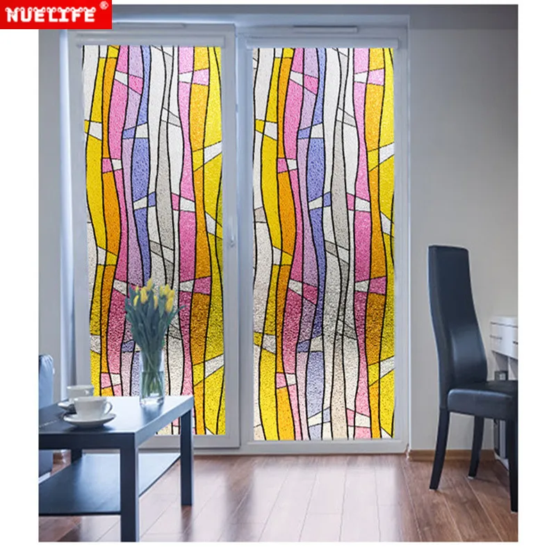 | Non-adhesive static cellophane color stripe window sticker bedroom light transmission opaque window paper sunscreen privacy film |