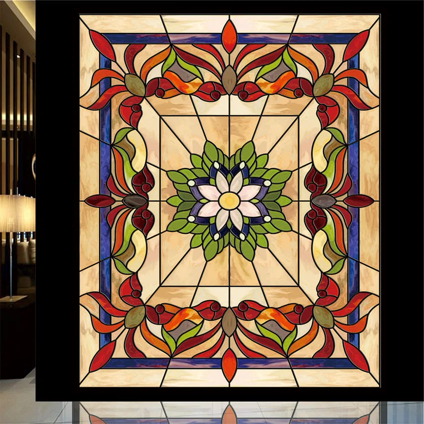 | Custom Size Lotus Flower window film Static Cling church stained glass Film for Balcony sliding door wardrobe foil |