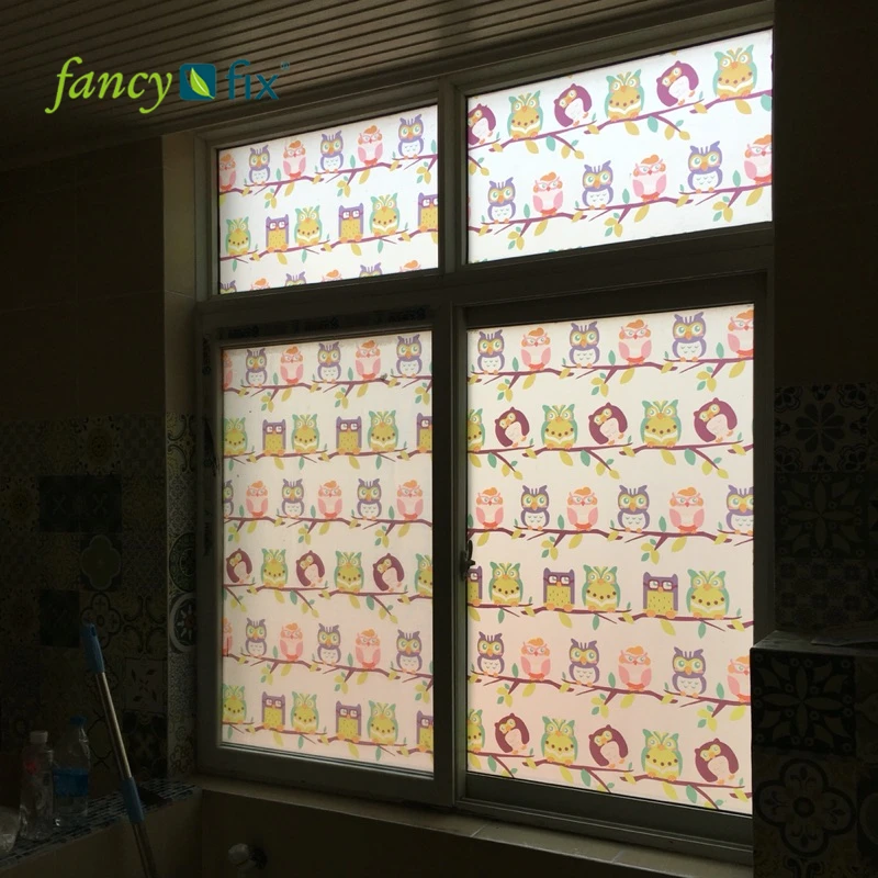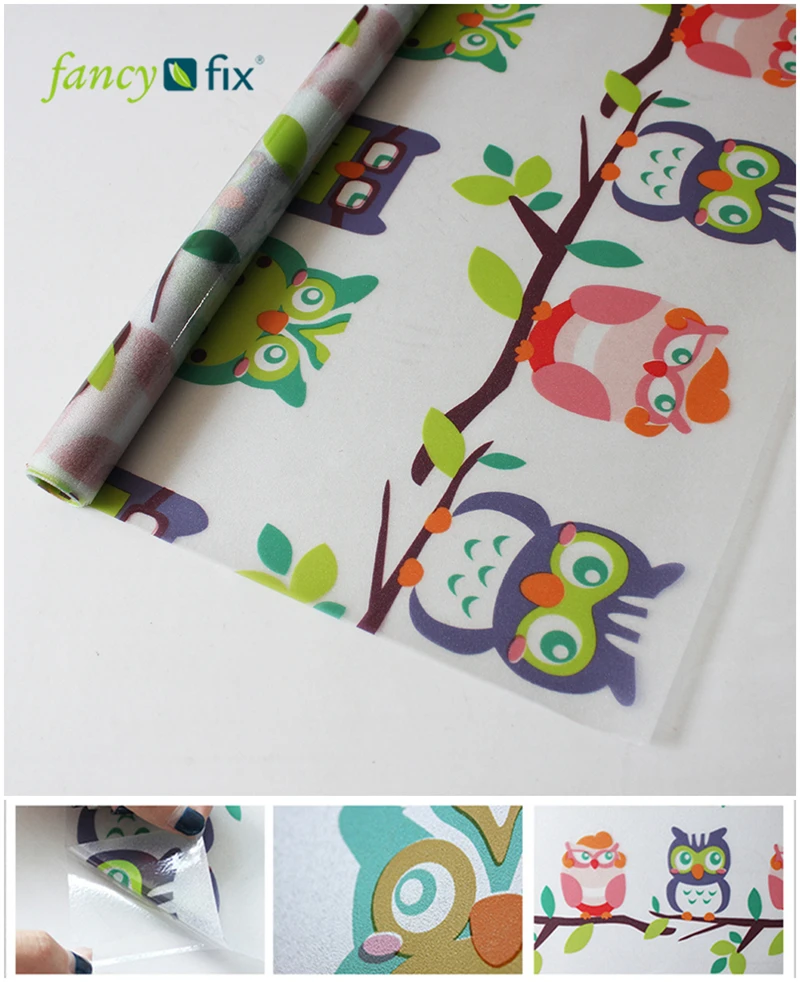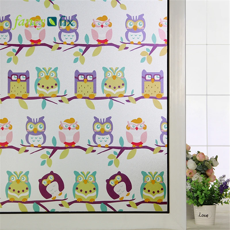 | FANCY-FIX Cute Owl Cartoon Decorative Film for Children room Kindergarten,Frosted Glass Window Film,Safety Static Cling Easy DIY |