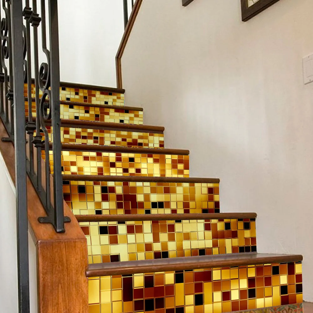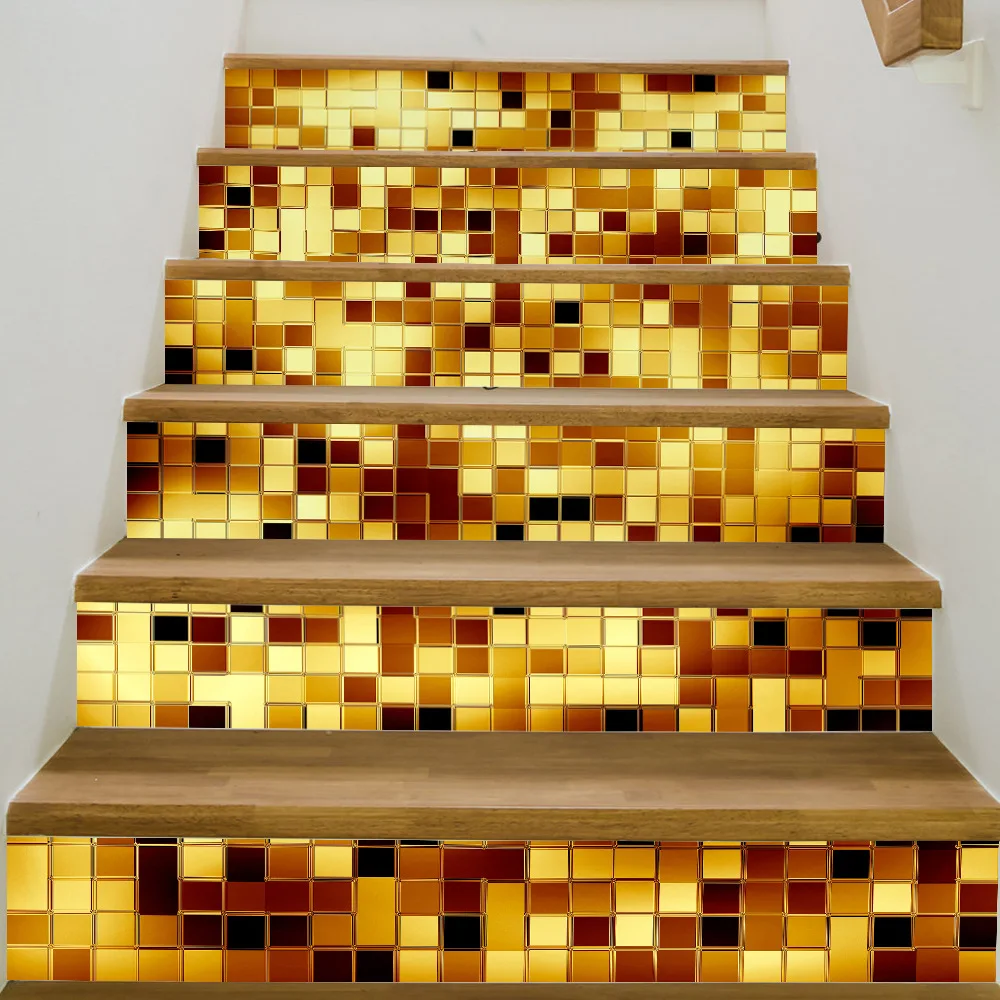 | Funlife Classic Gold / Silver Mosaic Design self-adhesive staircase stickers,Floor Mural Decals Home Decor |