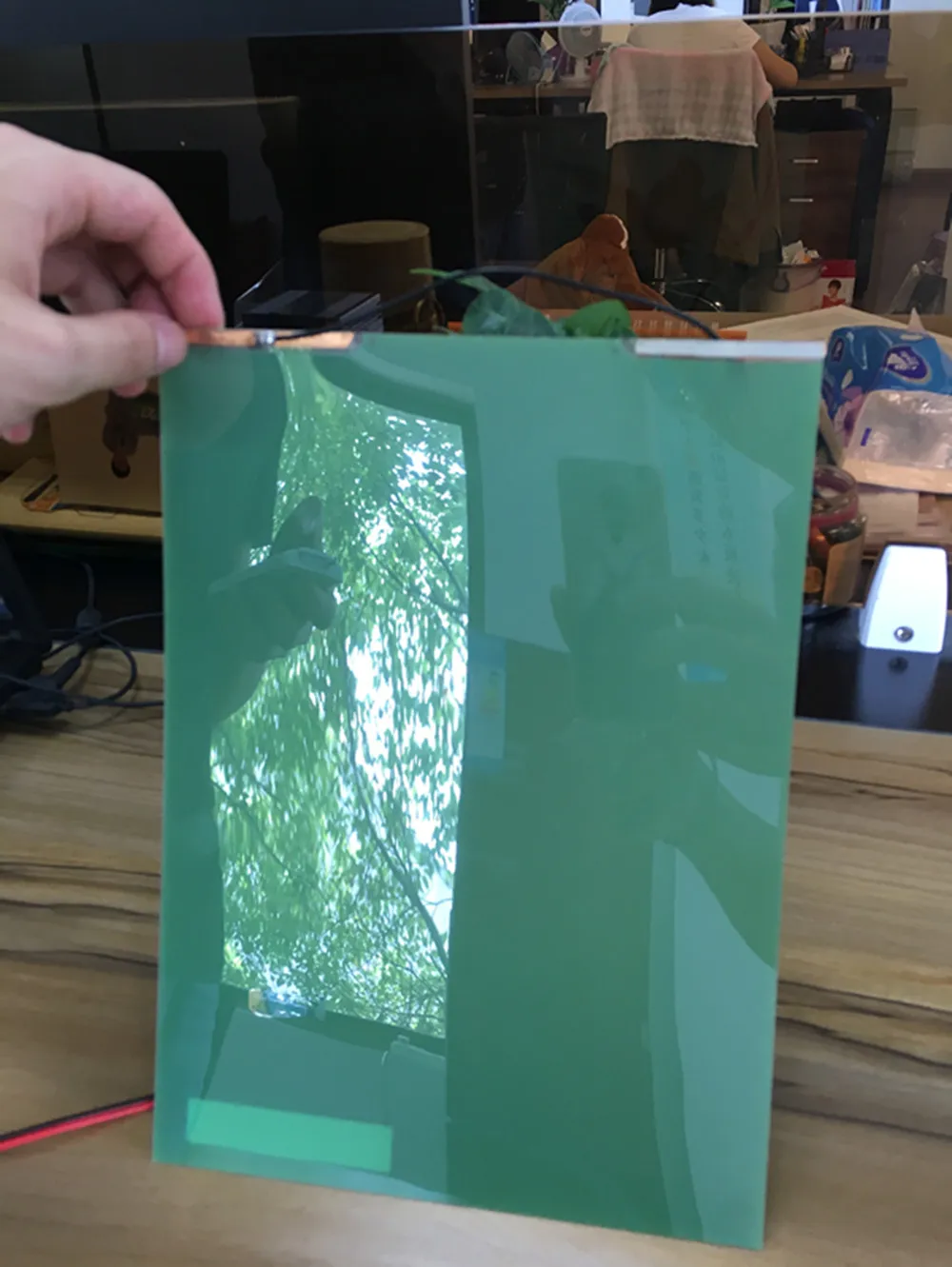 | 150mmx150mm Green Sample Electric Self-adhesive PDLC Film Smart Glass Window Door Tint Smart Film |