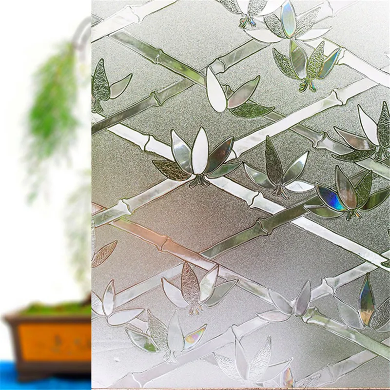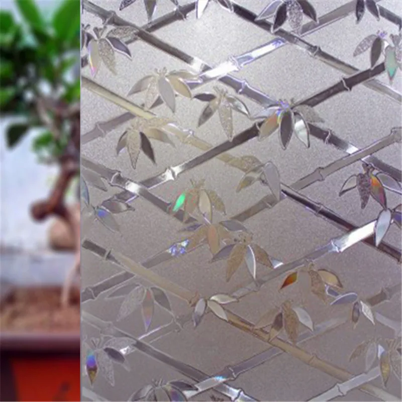 | 30 * 200 cm Vinyl high-quality frosted privacy glass window film; self-adhesive static color bamboo decorative window stickers |