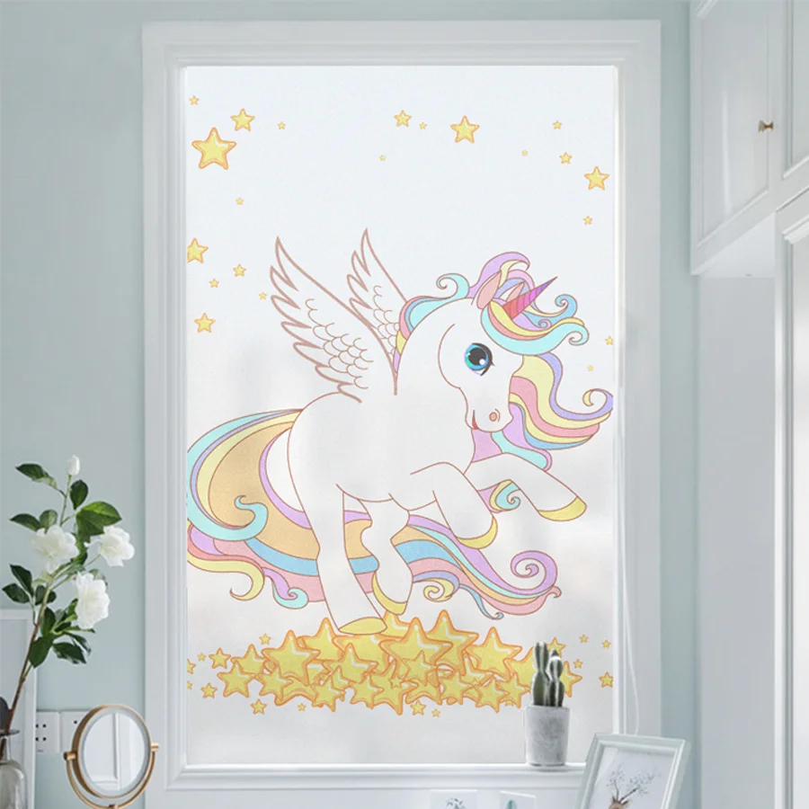 | Frosted glass static sticker window film Polyethylene Opaque protection of privacy Unicorn window stickers Home Decor |