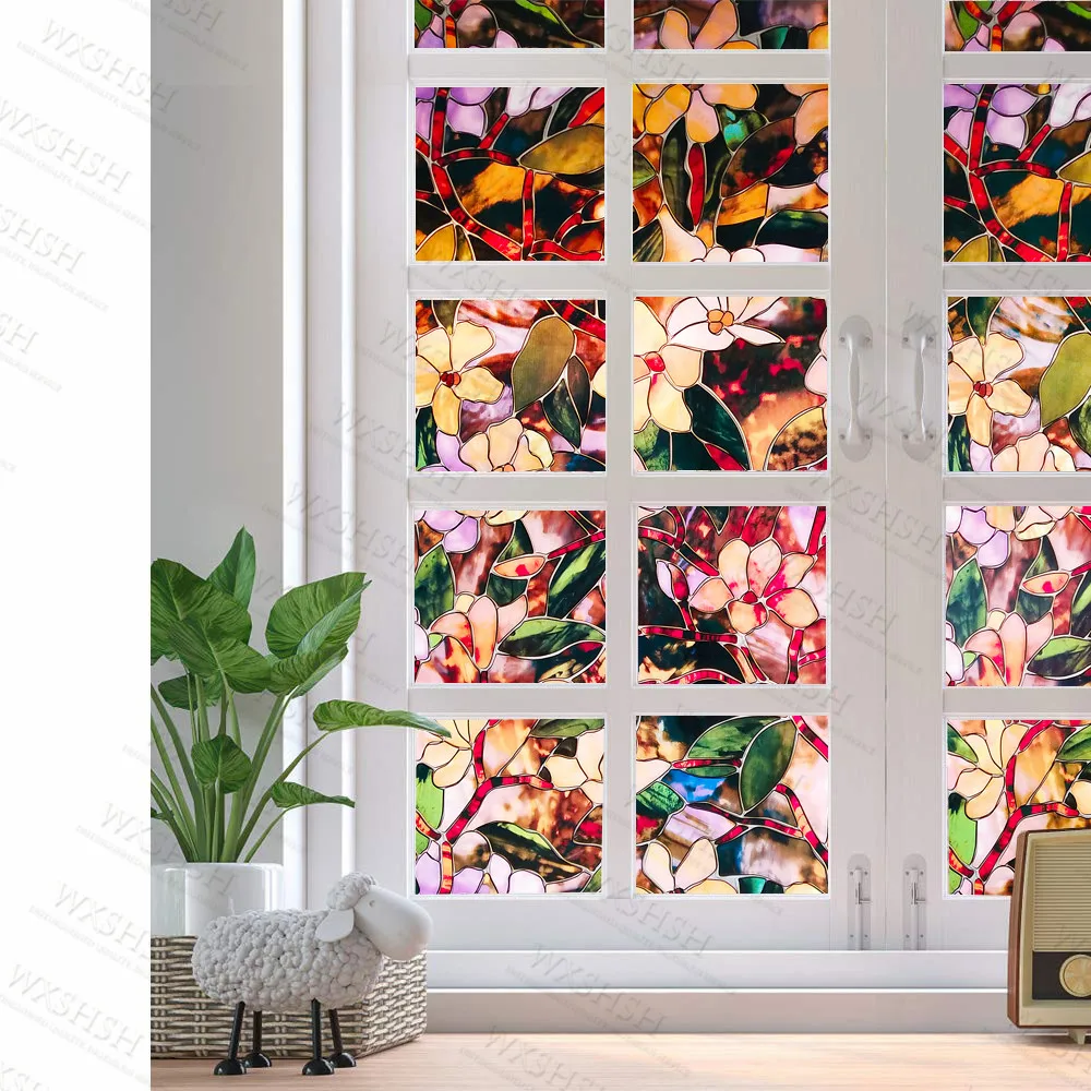 WXSHSH Stained Glass Window Film Privacy Static Cling Decorative Glass Film Magnolia Pattern Window Covering Blackout FilmBuy Now On Aliexpress