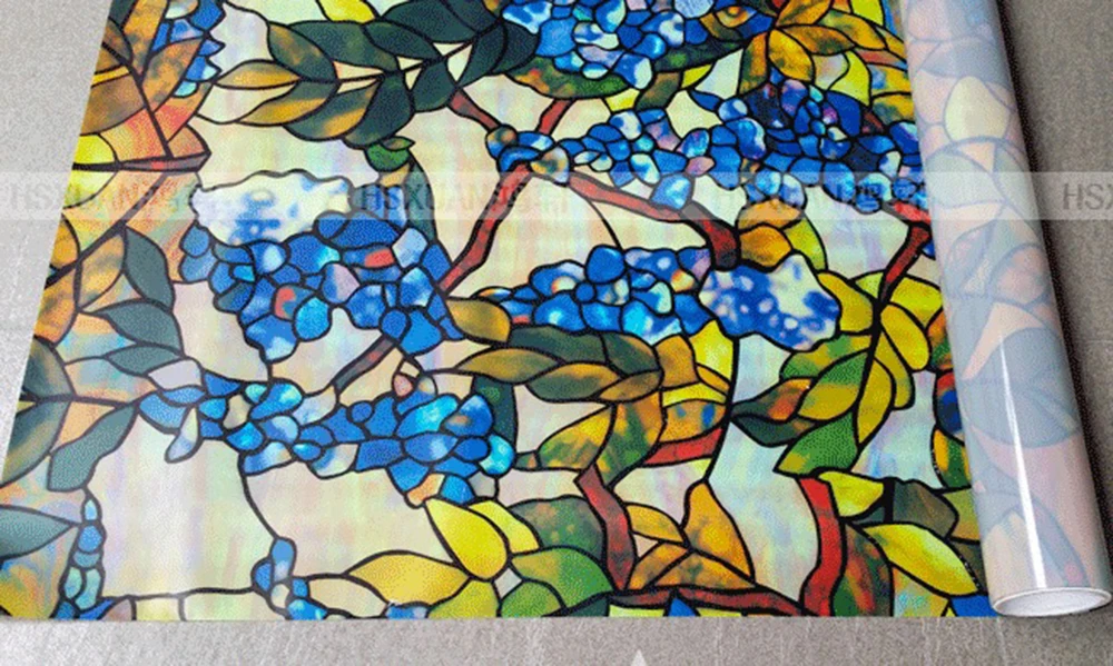 | 2020 Stained glass film Grape Floral Plant Vine Static Cling No Glue Window Glass Film Privacy Protection Decorative Window Film |