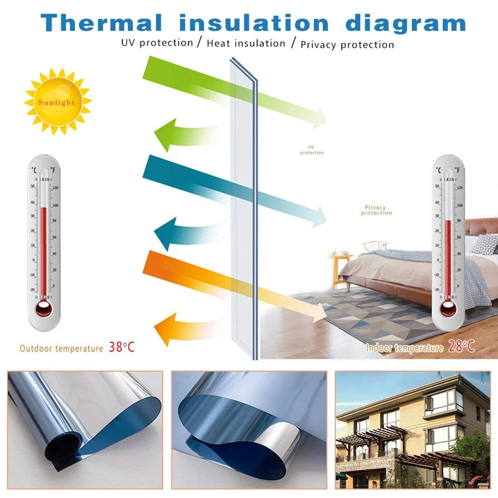 | 45cmx500cm Silver Reflective Window Film Heat Insultion One Way Mirror Window Film Glass Sticker Home Office Sricker |