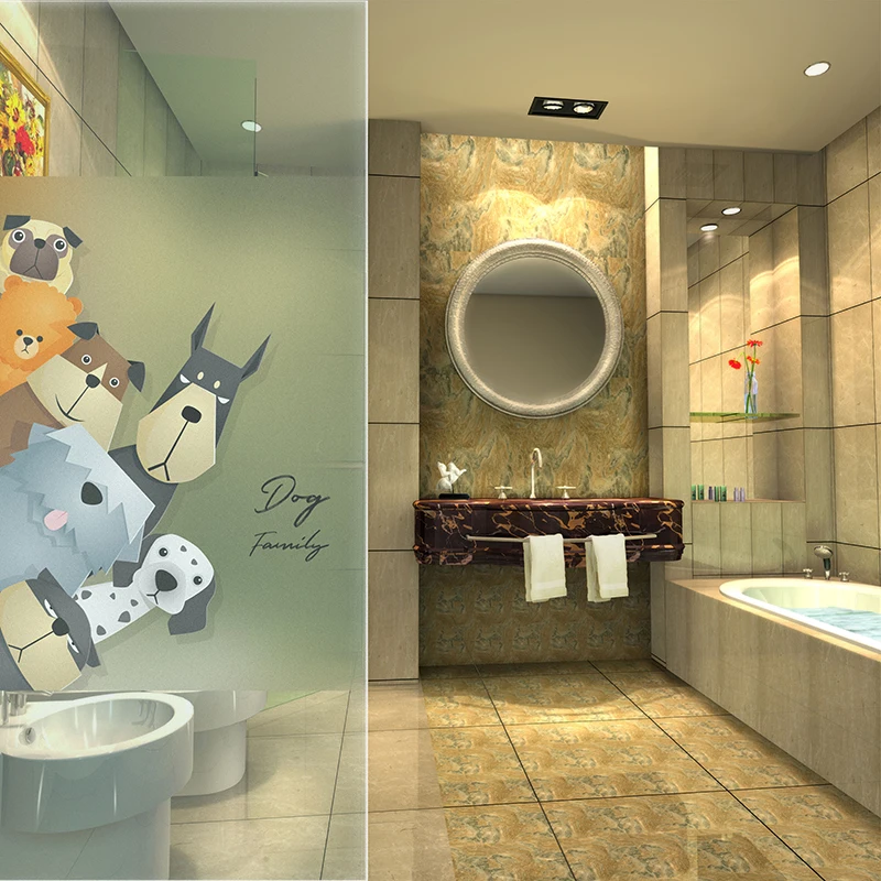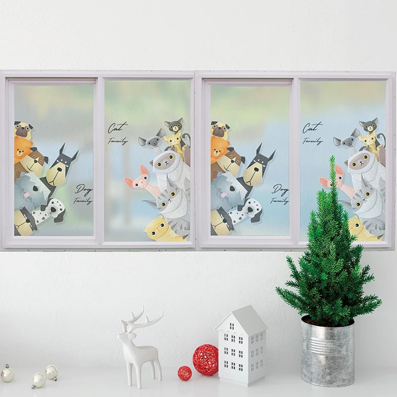 Custom Size Glass Film Static Cling Vinyl Cute Animals Cat Dog Pattern Bathroom Window Door Cabinet Decoration Film 40cmx100cm
