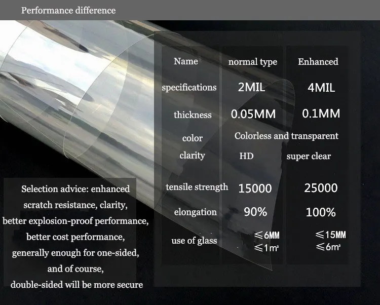 Best Price Comparison With Customized Size Security and Safety Clear Window Film shatter-proof for windows glass public places 2mil 7 wides for you choose