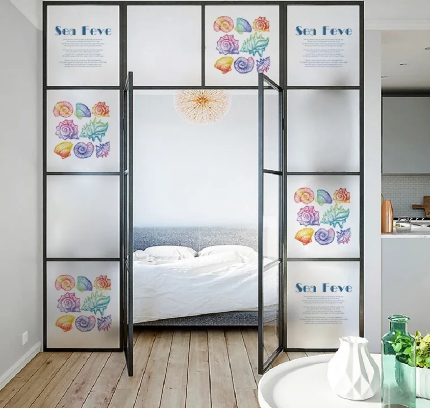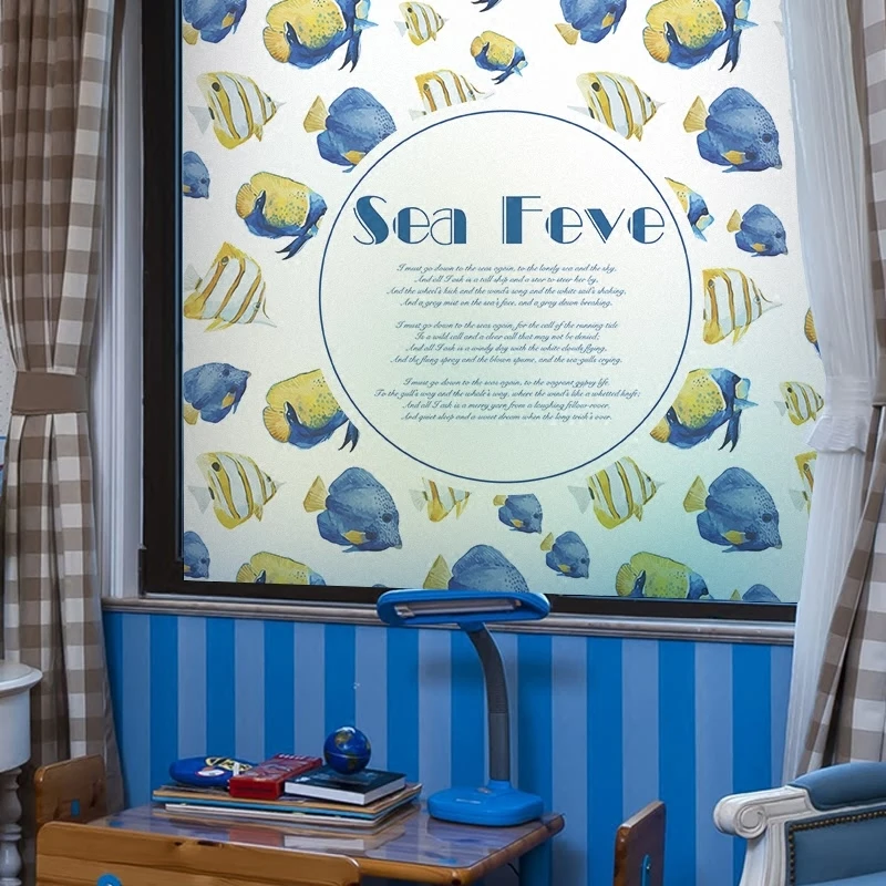 Custom Size Window Film Electrostatic Sea Theme Private Home Decals Removable Film For Home Office Restaurant Store 55cmx100cm
