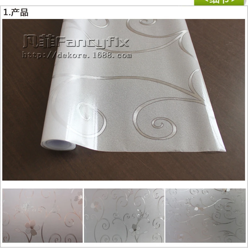 Silver iron art pattern film stained glass Opaque Frosted Window Films Vinyl Static Cling Self adhesive Privacy Glass Stickers