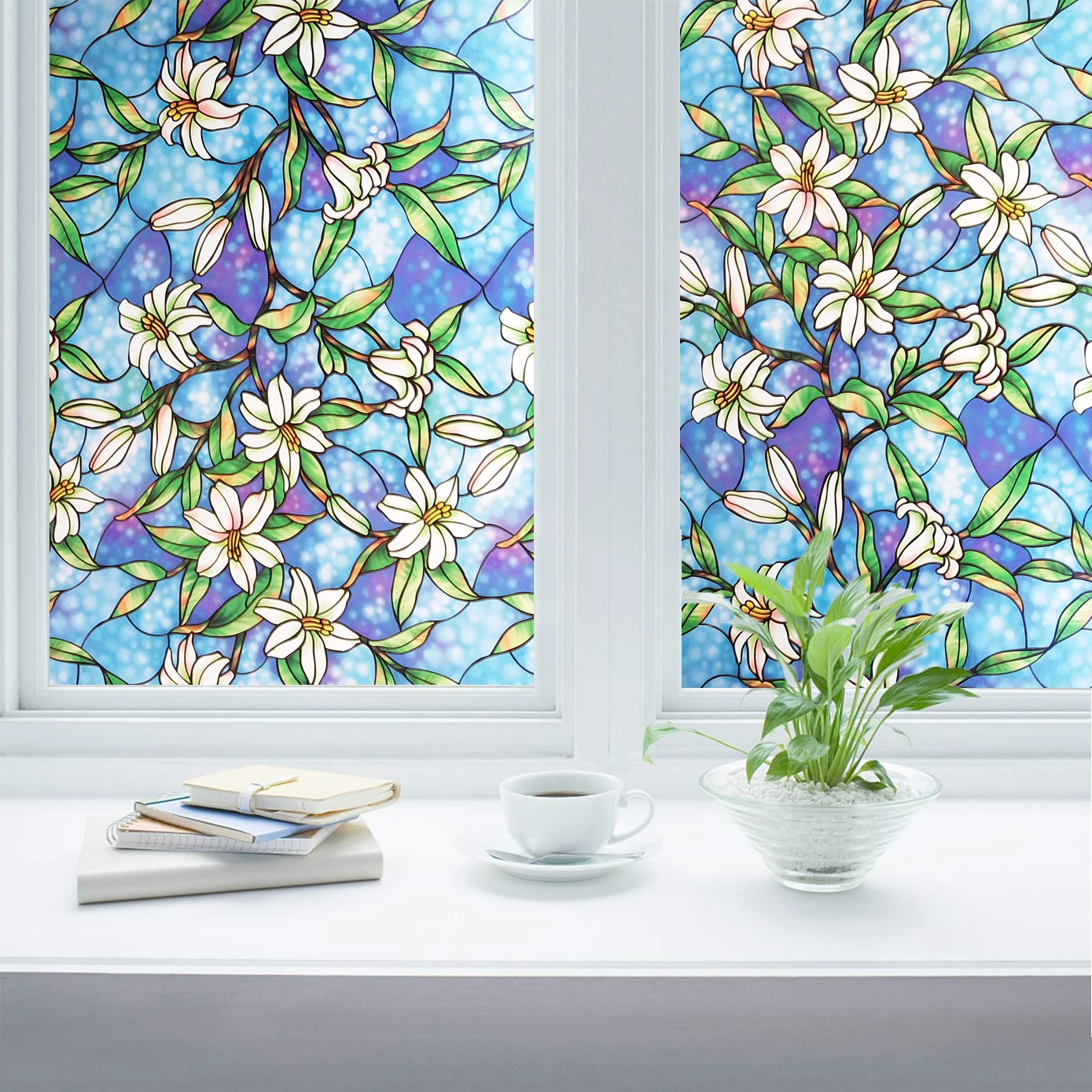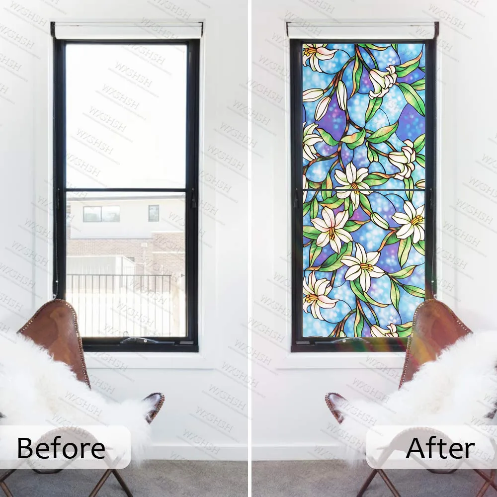 45/60/90 x 200 cm Privacy solar Window Film.Static Non-adhesive Stained magnolia Pattern Home Glass Decorative Sun Blocking FilmBuy Now On Aliexpress