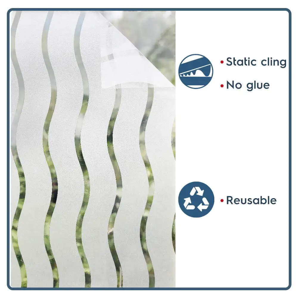 | WXSHSH No-Glue Static Decorative Privacy Window Films for Home Office Meeting Room (29.5In.by 157In.) Waves Stripes) Vinyl Foil |