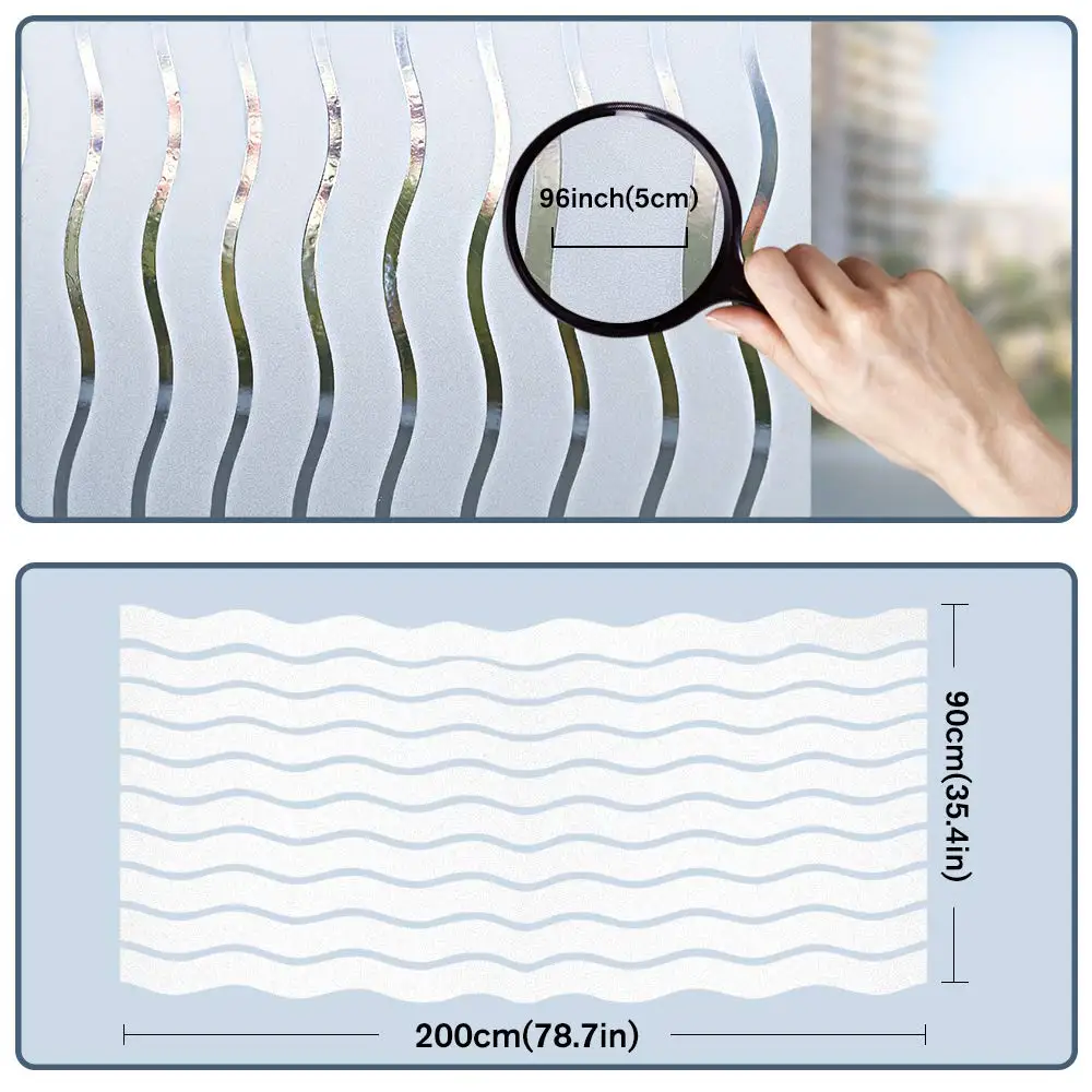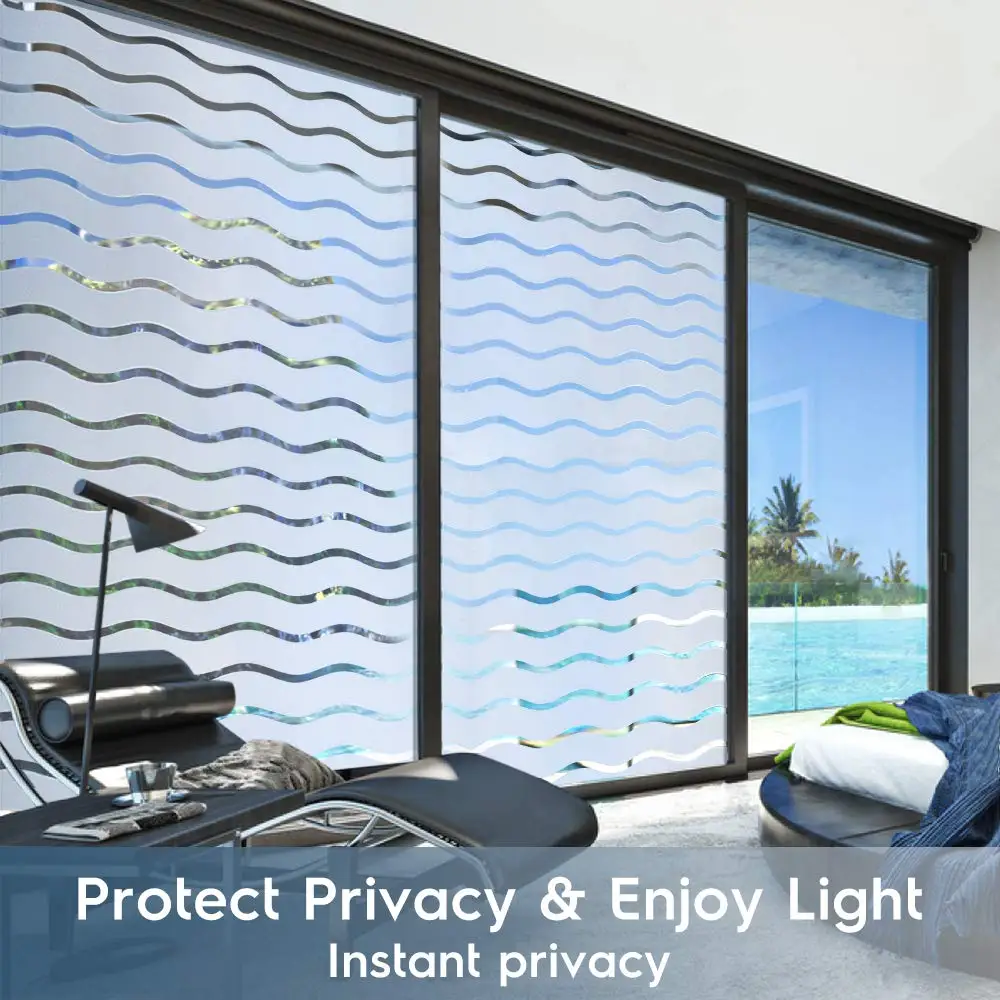 WXSHSH No-Glue Static Decorative Privacy Window Films for Home Office Meeting Room (29.5In.by 157In.) Waves Stripes) Vinyl Foil
