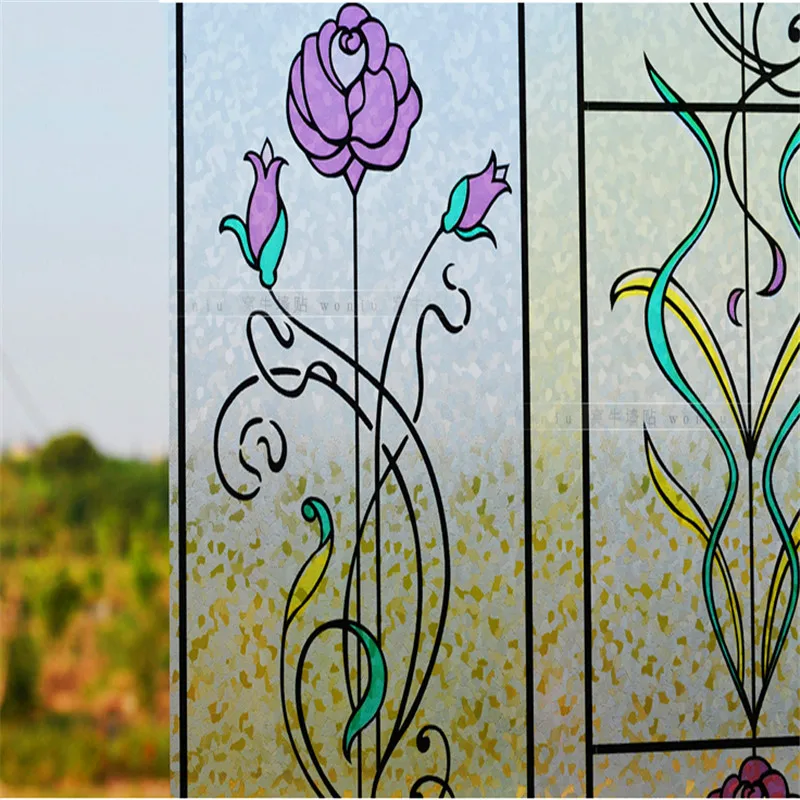 45*100 Cm Privacy Solar window film sun blocking color flower decorative glass stickers static cling vinyl Anti-UV window foil