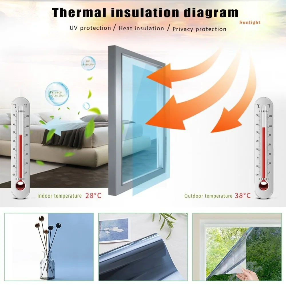 Sunice Window Film Silver One-way Vision Mirrored Film Decorative Sticker Decals Heat Reduction,Waterproof,Privacy 50CMx100CM