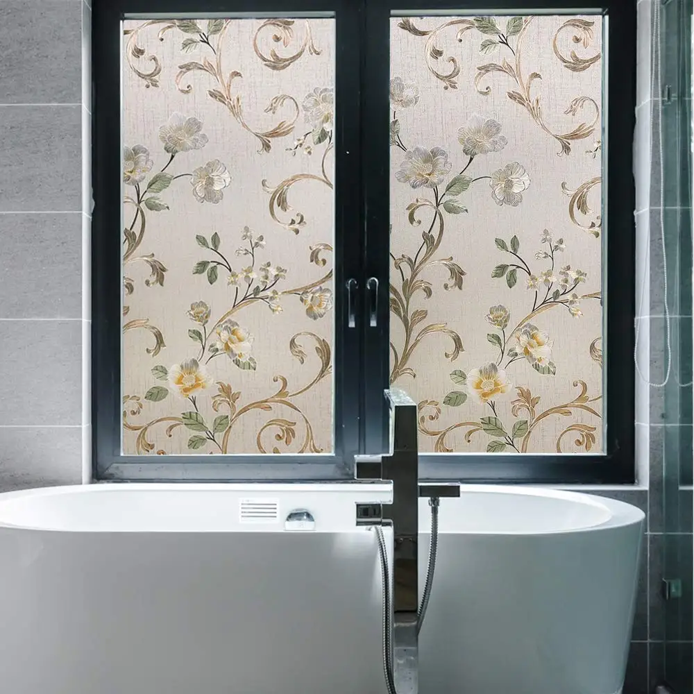 45/60/90 x 200 cm Privacy solar Window Film.Static Non-adhesive Stained magnolia Pattern Home Glass Decorative Sun Blocking FilmBuy Now On Aliexpress