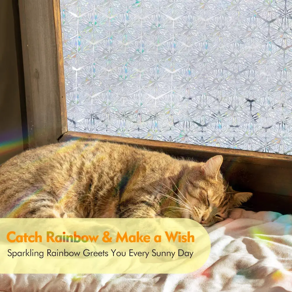 3D Clear Diamond Decor Stained Glass Window Film Rainbow Effect Removable Self Adhesive Glass Sticker Static Cling Window Blind