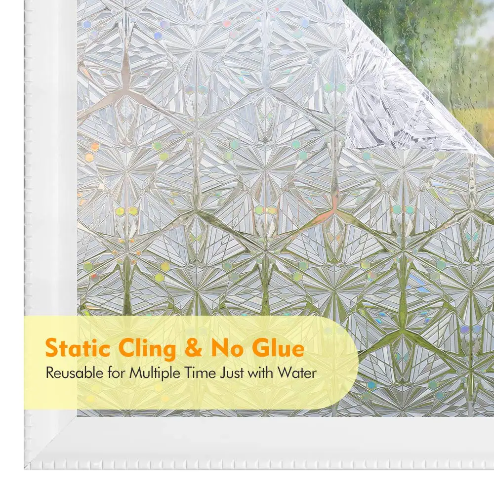 | 3D Clear Diamond Decor Stained Glass Window Film Rainbow Effect Removable Self Adhesive Glass Sticker Static Cling Window Blind |