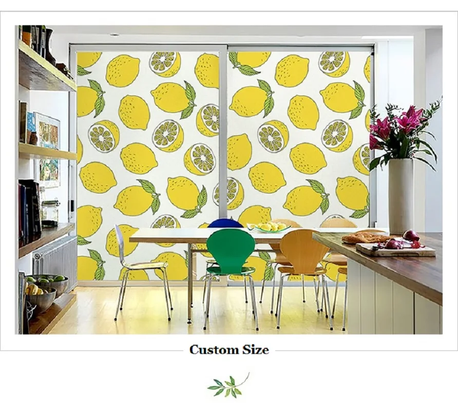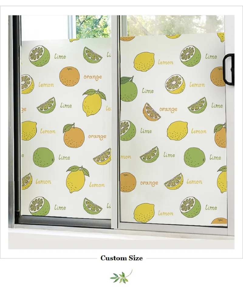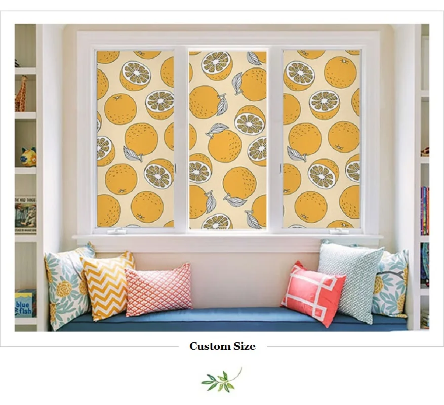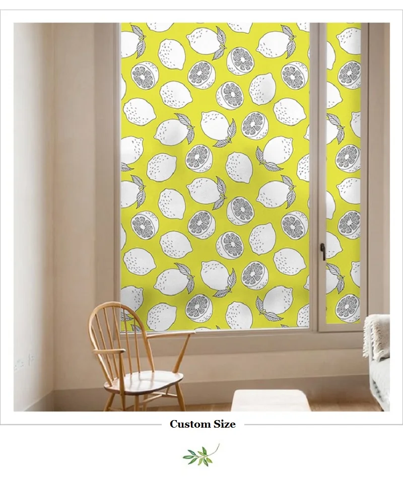 Customized Size Glass Sticker Static Cling Fruits Lemon Orange Pattern Home Security Decorative Removable Tint-Film 40cmx60cm