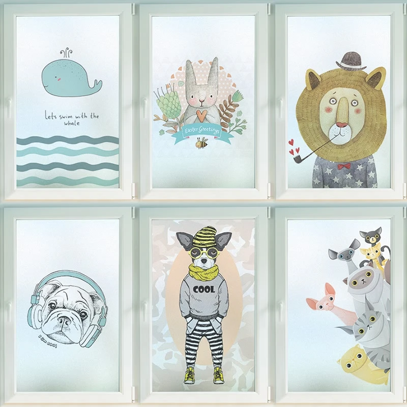 Custom Size Window Film Static Cling Cartoon Cute Animals Private Decorative Water-Proof Anti-UV Removable Tint-Film 50cmx100cm