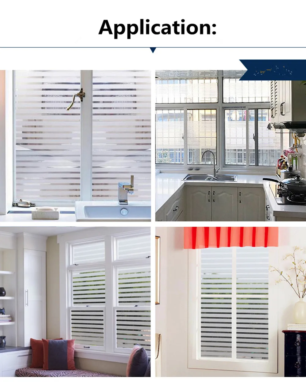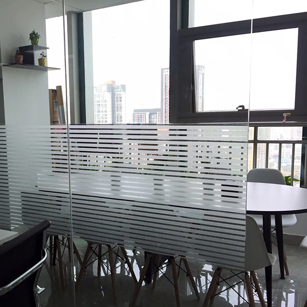 | SUNICE Decorative Privacy Window Film Self-adhesive Glass Sticker Window Tint for Home or Office Frosted Stripe 60cmX200cm |