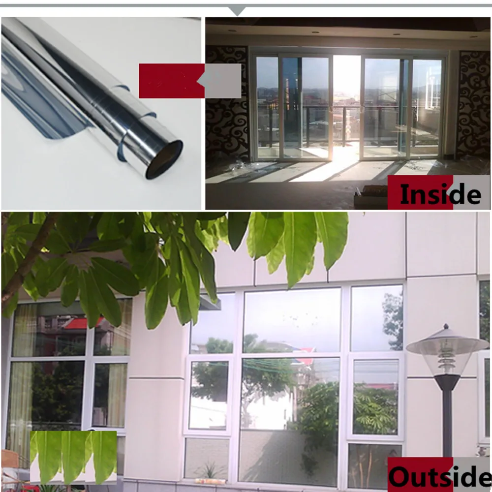 | SUNICE One Way Vision Mirrored Film Silver Solar Tint Film Sunscreen Glass Foils Privacy,Heat Insulation Home Office Hallway |
