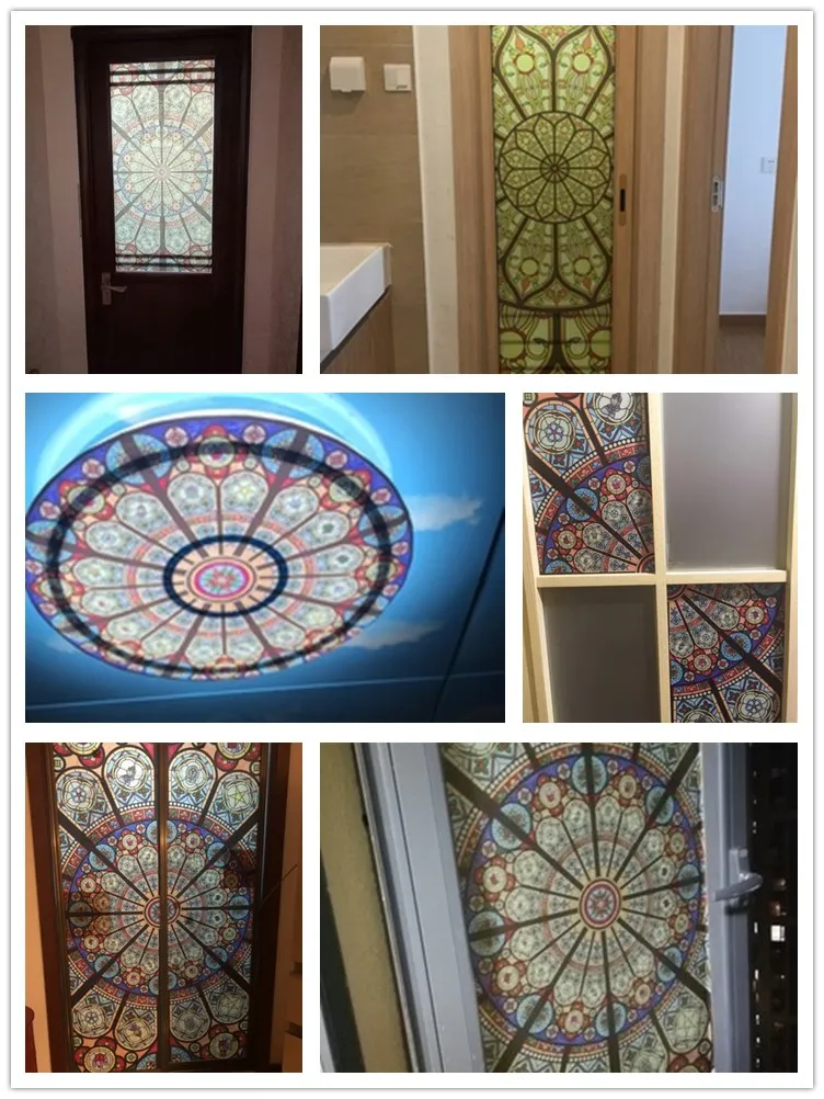 Custom size electrostatic frosted stained glass window film church home foil door stickers PVC self-adhesive window films
