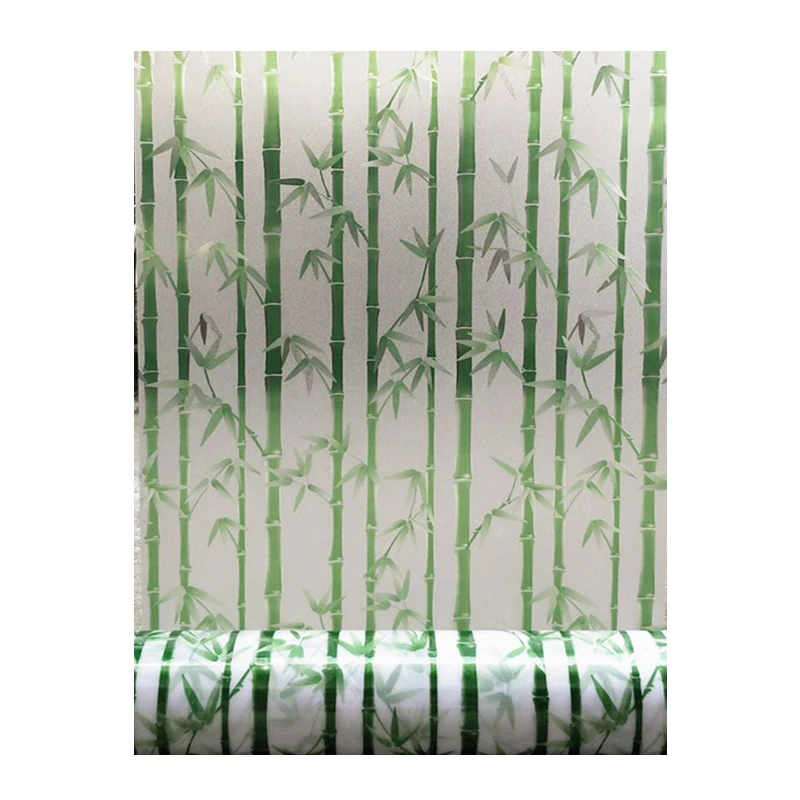 Wide 45/60cm static window film frosted privacy glass window sticker green bamboo bathroom CW80
